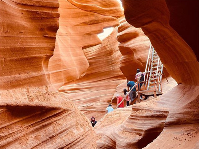 This canyon has a more narrow walking space on the ground of the canyon with a wider top – similar to the shape of the letter V. The stairs and twisty path of the Lower Antelope makes this canyon a little more fun for adventurous travellers.